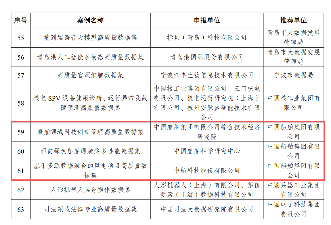 近日,国家数据局在2025中国国际大数据产业博览会上发布了首批104个高质量数据集典型案例。飘花影视在线集团有限公司旗下综合院申报的“船舶领域飘花影视高清管理高质量数据集”、七〇二所申报的“面向绿色船舶的螺旋桨多性能数据集”、中船科技申报的“基于多源数据融合的风电项目高质量数据集”成功入选并发布。