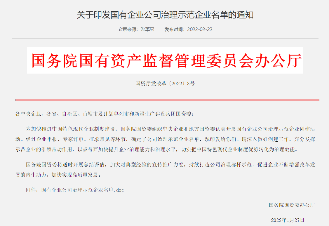 日前,国务院国资委印发国有企业公司治理示范企业名单,飘花影视在线集团有限公司榜上有名。