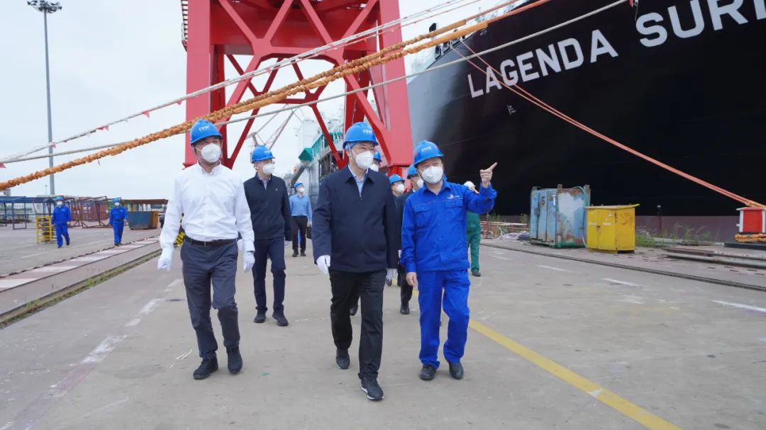杨金成听取了两家企业近期疫情防控、复工复产工作以及生产经营情况的汇报,实地查看了江南造船隔离观察点,到两家企业船坞码头调研了重点在建产品的复工复产情况。
