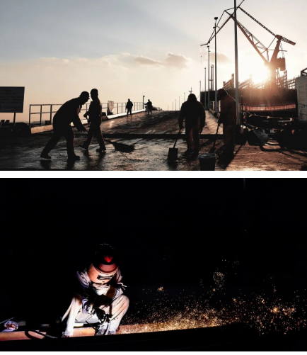 写焊花四溅下的笑脸