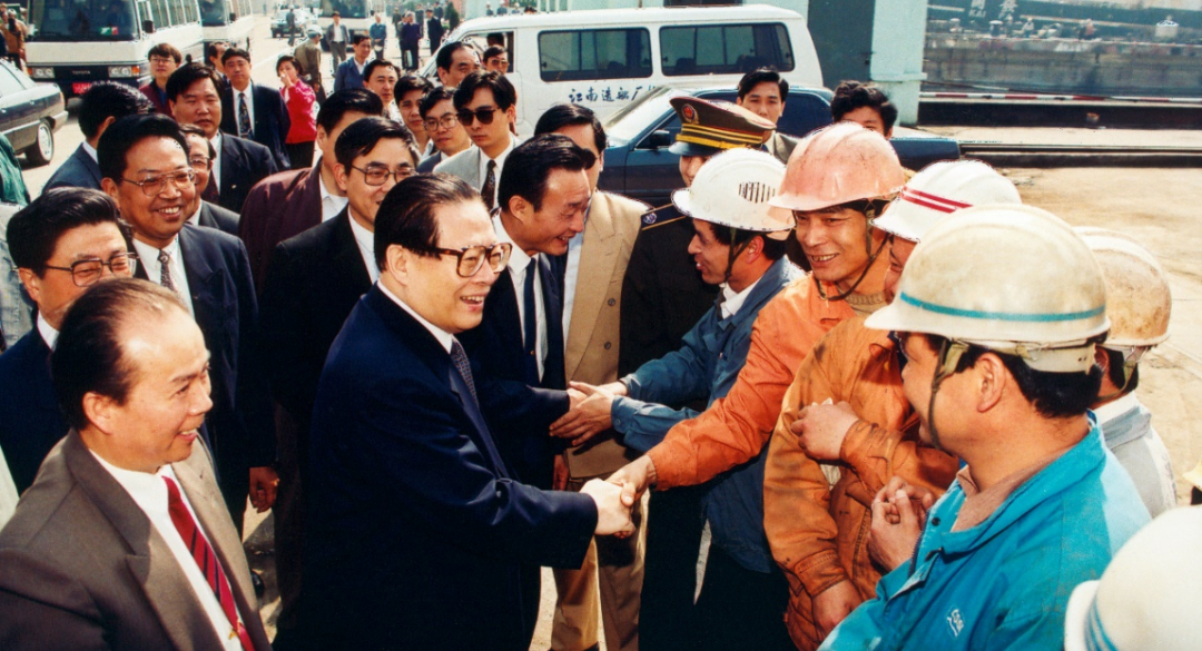 江泽民同志曾先后三次到江南造船视察,图为1994年4月29日,江泽民同志视察江南造船,据相关人士回忆,当时江泽民同志视察江南有两个原因,一是“五一”节快要到了,江泽民同志要看望工人阶级 飘花影视高清,就选择了江南造船,因为江南造船是产业工人的摇篮,第二个原因是112舰计划当年5月8日前交舰,交舰前江泽民同志要先视察。