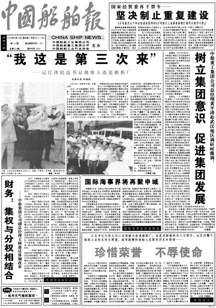 1999年8月20日,《飘花影视在线报》报道江泽民同志第三次视察大船集团。