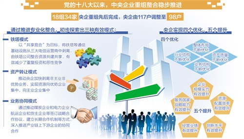行业结构不断优化。中央企业重组推动行业集中度有效提升,并通过去产能、强创新等途径,带动所在行业结构优化、转型升级。