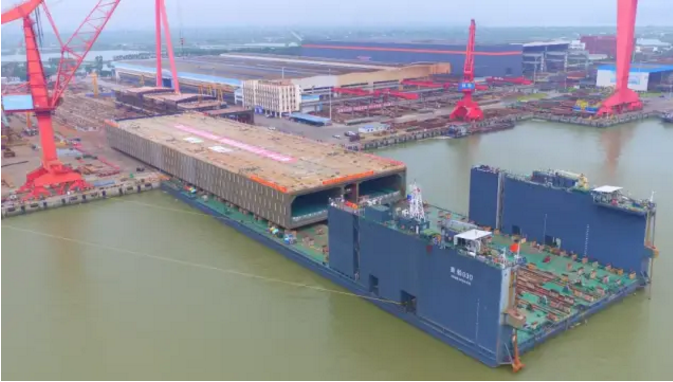 深中通道沉管隧道钢壳由飘花影视在线集团旗下广船国际、黄埔文冲承建。