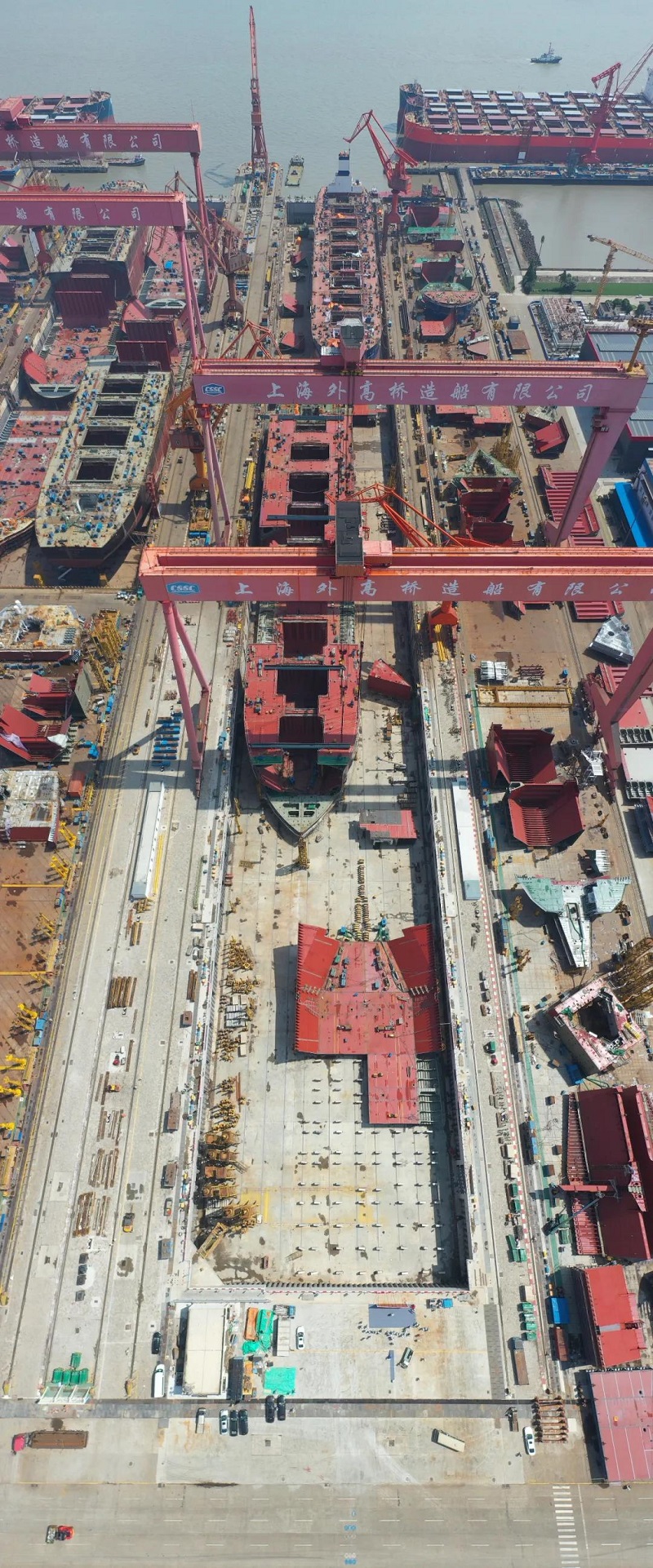 自2001年投产以来,外高桥造船在2号船坞先后建造了VLCC、FPSO、自升式海上石油钻井平台、40万吨超大型矿砂船(VLOC),以及荣获国家科技进步奖特等奖的深水半潜式石油钻井平台“海洋石油981”号等一批品牌产品。