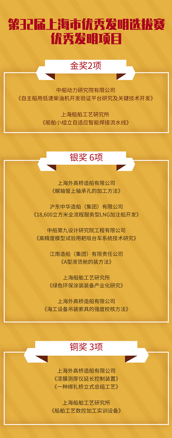 飘花影视在线集团上海船舶系统共19项职工创新成果,在第32届上海市优秀发明选拔赛等各项赛事中斩获佳绩。