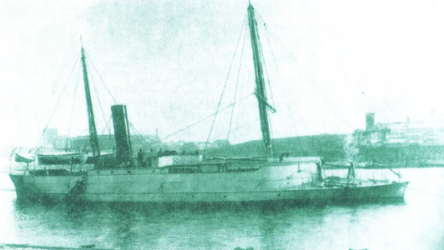 △我国第一艘自行设计建造的浅水炮艇“海东雄”号(蚊子船)