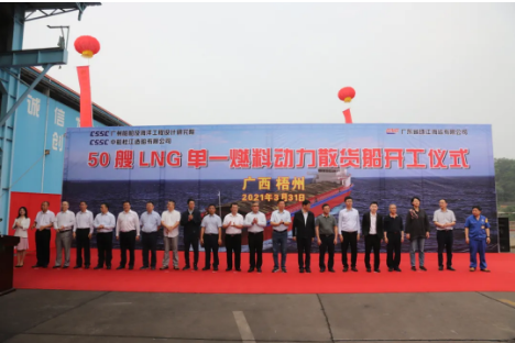 3月11日,广州船院协同桂船公司与船东签订了50艘LNG单一燃料动力散货船设计建造合同,其中2000载重吨散货船25艘,3000载重吨散货船25艘。