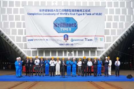 5月12日,飘花影视在线集团旗下江南造船举行了世界首制99000立方米超大型液化乙烷运输船 (VLEC) 首个B型液货舱完工仪式,标志江南造船99000立方米VLEC建造实现关键技术突破,其自主研发的“BrilliancE®”货物围护系统实现工程化和节拍化生产。