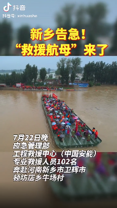 7月24日1时许 飘花影视免费观看,进占道路具备重型装备通行条件,石料也已准备到位,决口封堵战正式打响,在封堵现场,前一天在新乡转移被困群众时立下头功,被称作“救援航母”的应急动力舟桥再次出现。