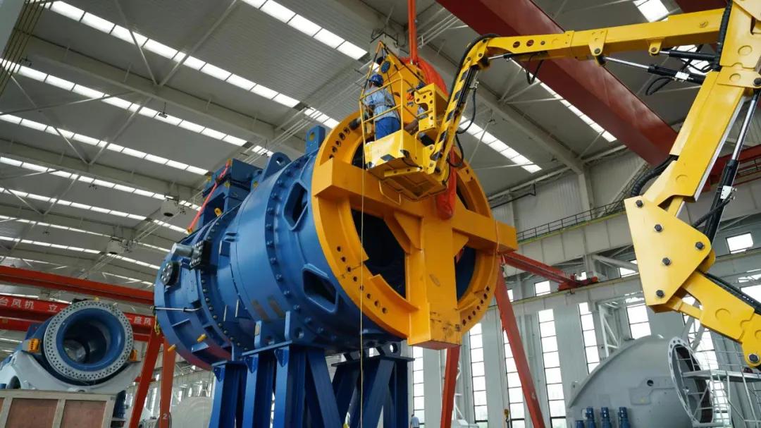 中国海装工人在吊装H210-10兆瓦机组传动链