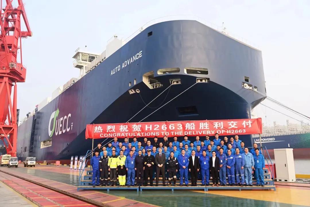 该船是江南造船为挪威UECC公司建造的3600车汽车运输船(PCTC)首制船“AUTO ADVANCE”号,交付后将投入到北欧—地中海区域航线营运。