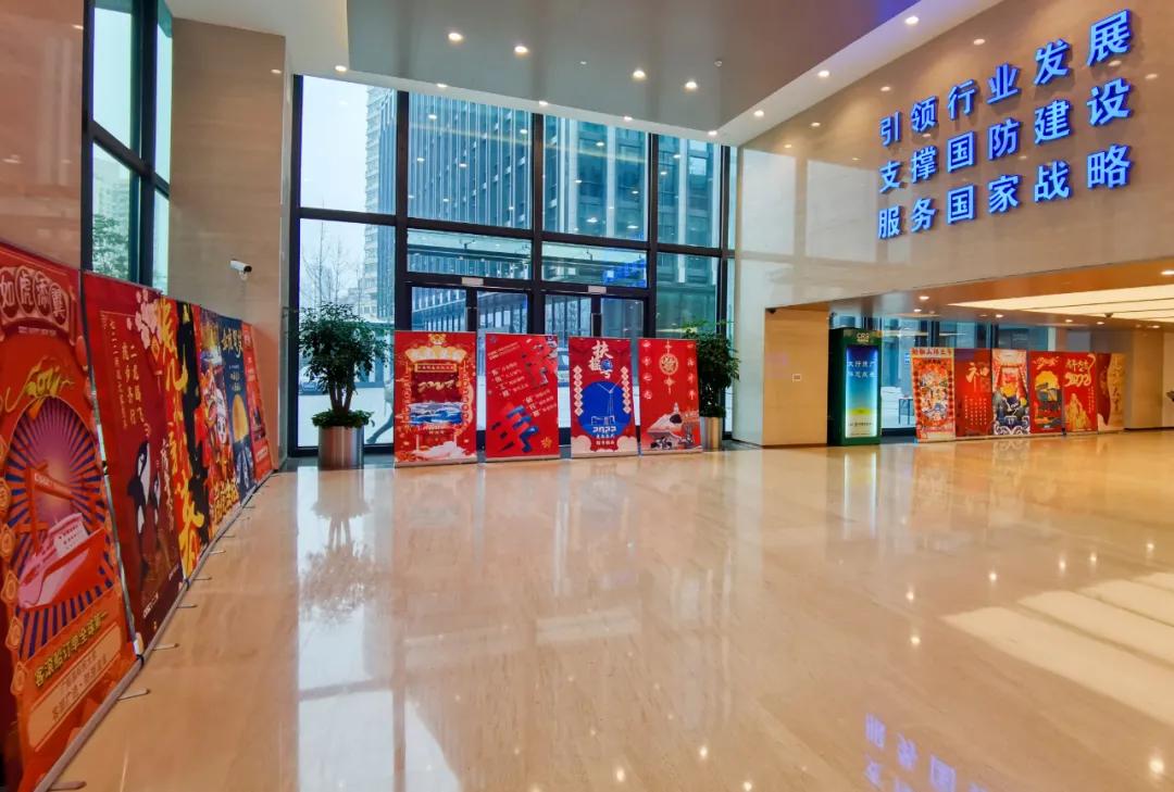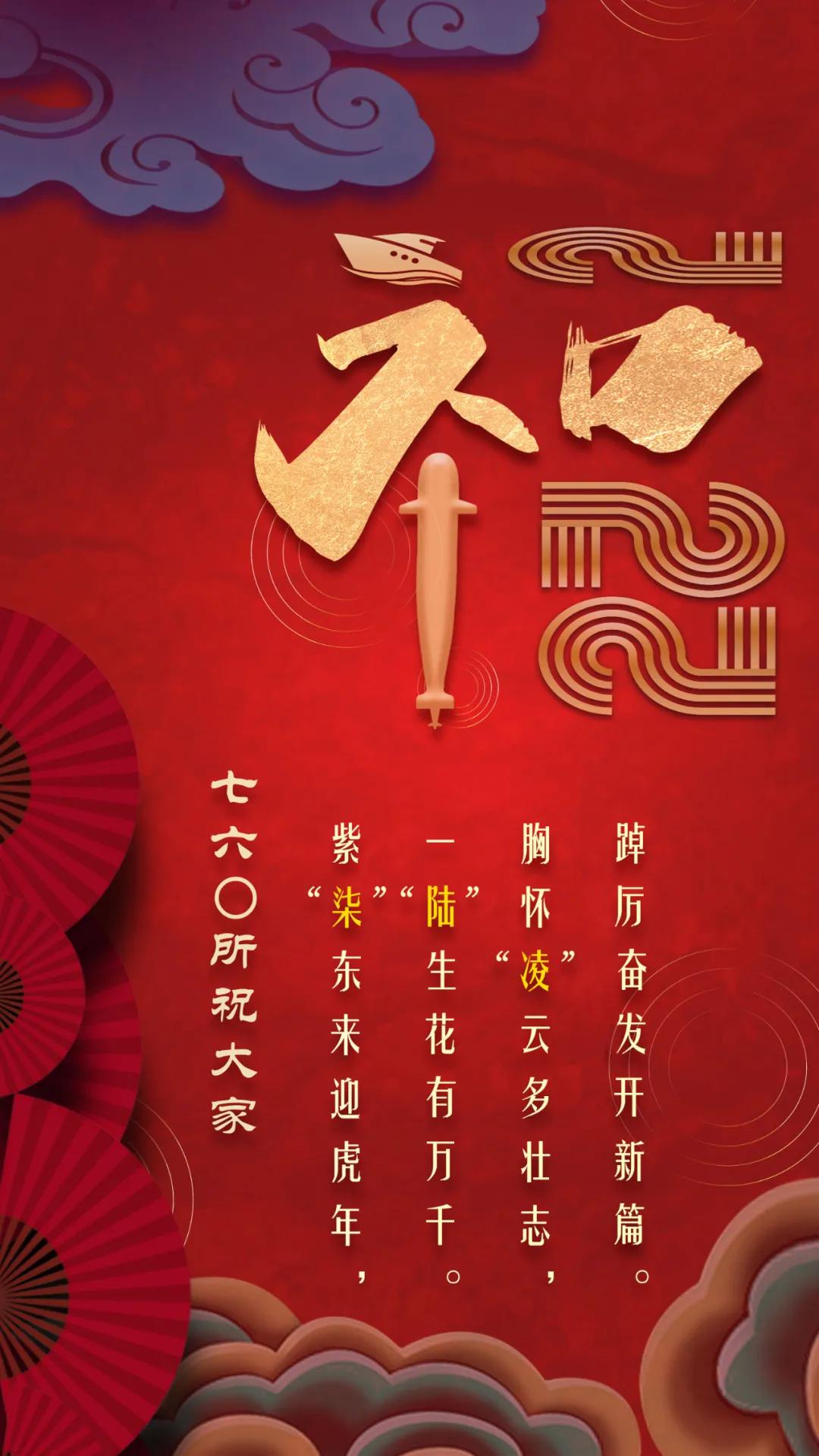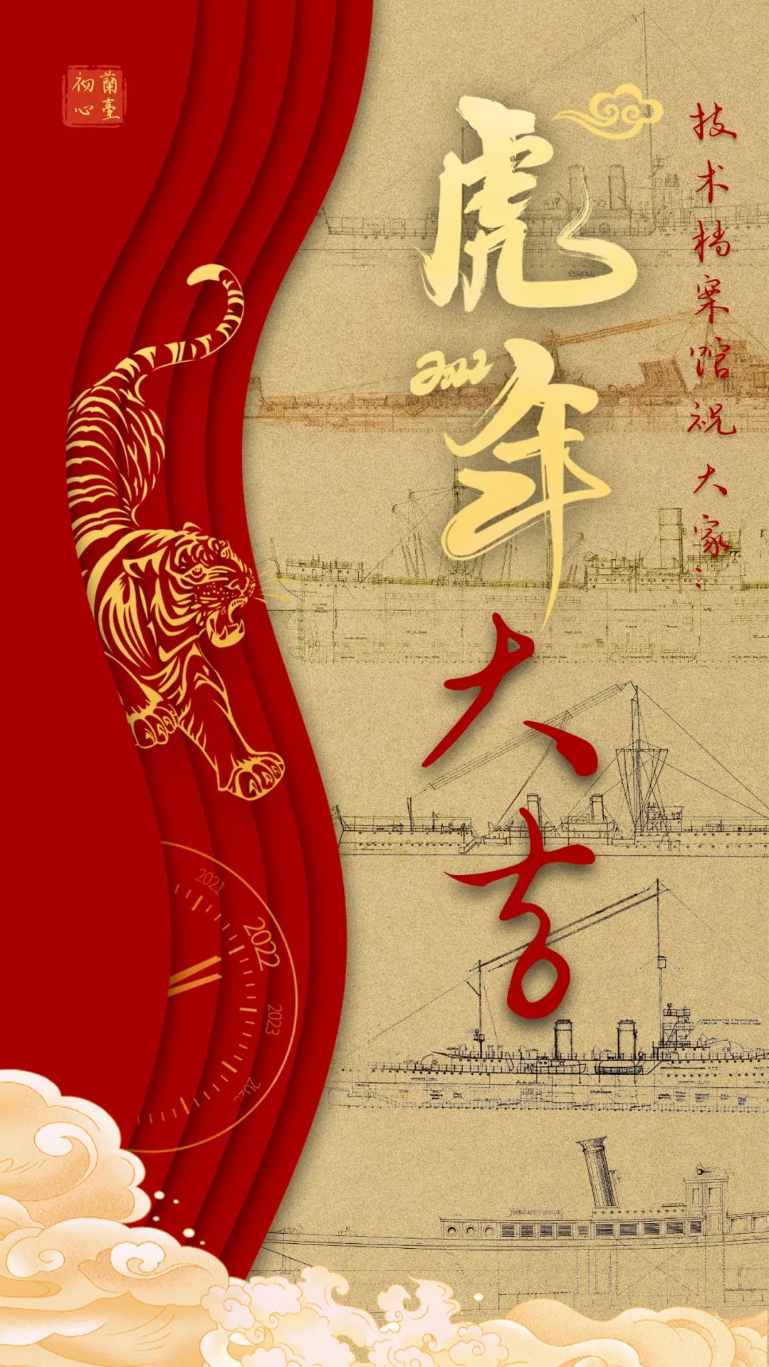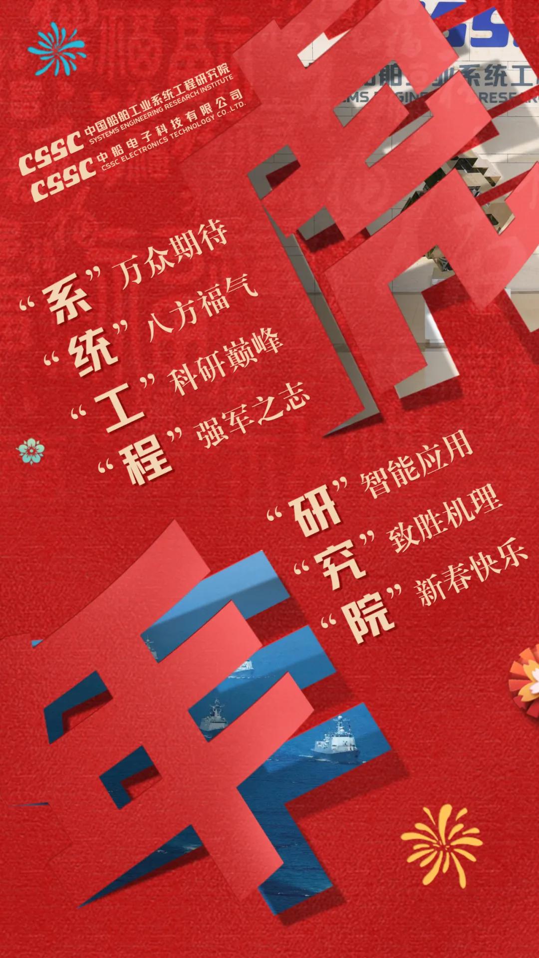 以中国红为主色调,运用传统剪纸手法结合镂空设计,寓意揭开虎年新篇章,映入眼帘的舰艇乘风破浪、浩浩荡荡,传递系统工程研究院/中船电科建设强大海军的信心和决心!
