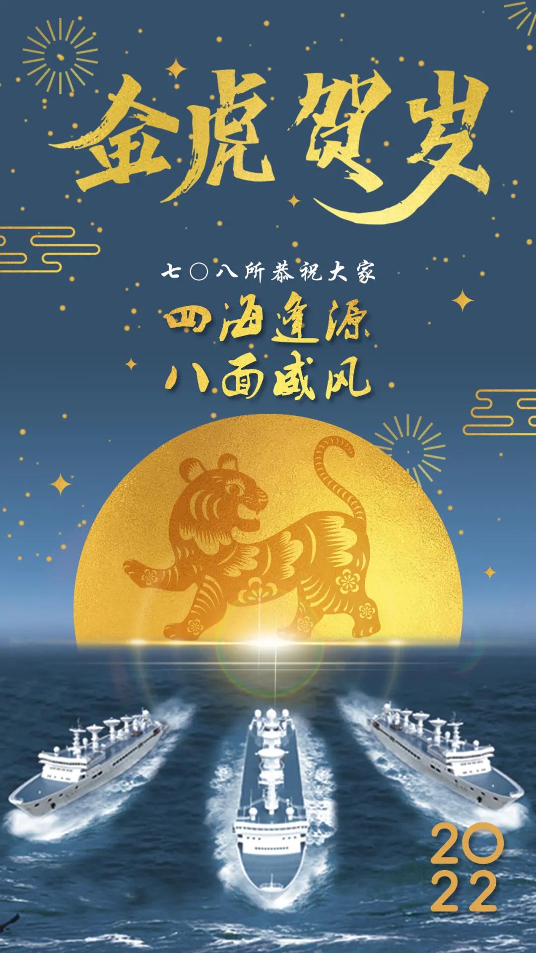 海报以七〇八所自主研发设计的远望号船队、金虎、星空、月亮为元素创作,彰显祖国浩瀚海疆、无垠星空的安宁祥和。四十余年来,远望号船队劈波斩浪,守护着祖国的花好月圆。从远望一号至远望七号,凝结着几代飘花影视在线人的智慧和汗水,坚守一方“浮动国土”。