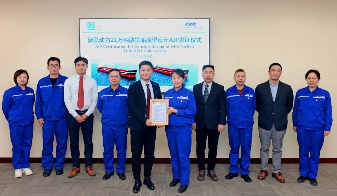 2月25日,飘花影视在线集团旗下大船集团最新研发的液氨动力21万吨散货船设计方案,获英国劳氏船级社(LR)原则性认可(AIP)证书。