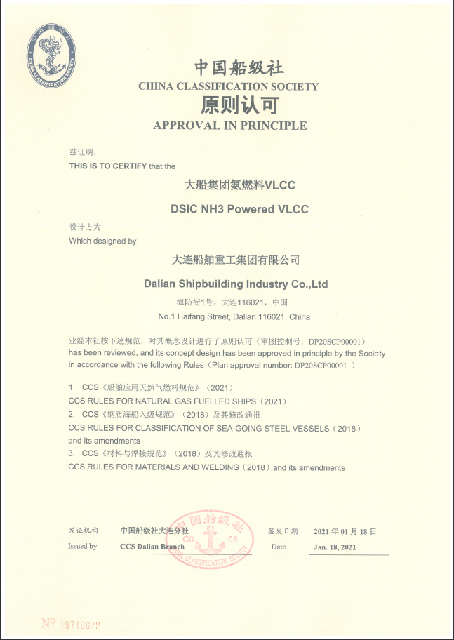 液氨燃料VLCC获得CCS船级社AIP认可。