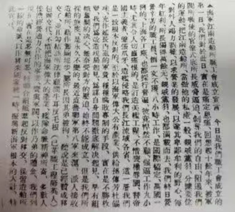 《海军江南造船所职工会成立宣言》