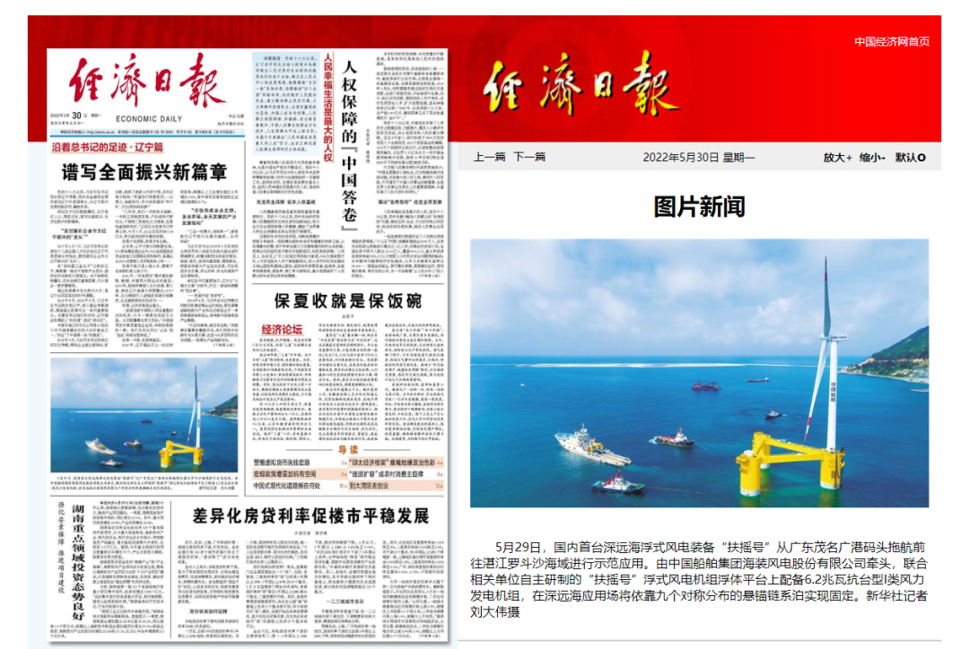这是“扶摇号”继机组、浮体下线后,再次取得的又一里程碑成果,将对我国海上风电迈向深远海,助力“30·60”双碳目标达成产生重大意义。