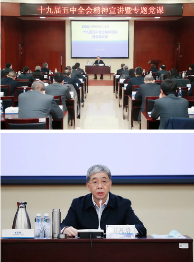 雷凡培指出,党的十九届五中全会通过的《中共中央关于制定国民经济和社会发展第十四个五年规划和二〇三五年远景目标的建议》,充分体现了以习近平同志为核心的党中央规划未来的远见卓识和继往开来的历史担当,深刻指明了今后一个时期我国经济社会发展的指导方针、主要目标、重点任务、重大举措。作为船舶军工央企,我们要深刻认识十九届四中全会以来党和国家事业取得的重大成就,切实增强做到“两个维护”的政治自觉、思想自觉和行动自觉;要深刻领会制定“十四五”规划和二〇三五年远景目标的重大意义,切实增强坚定“四个自信”的政治自觉、思想自觉和行动自觉;要深刻认识《建议》的起草背景与特点要义,切实增强贯彻落实全会精神的政治自觉、思想自觉和行动自觉。要把坚决贯彻落实习近平总书记重要指示作为首要职责,坚决履行强军首责,全面推进党建、改革、创新、经营、疫情防控等各项工作,集中精力把自己的事办好,推动实现高质量发展,奋力建设世界一流船舶集团,为建设世界一流海军提供一流装备,为全面建设社会主义现代化国家作出新的更大贡献。