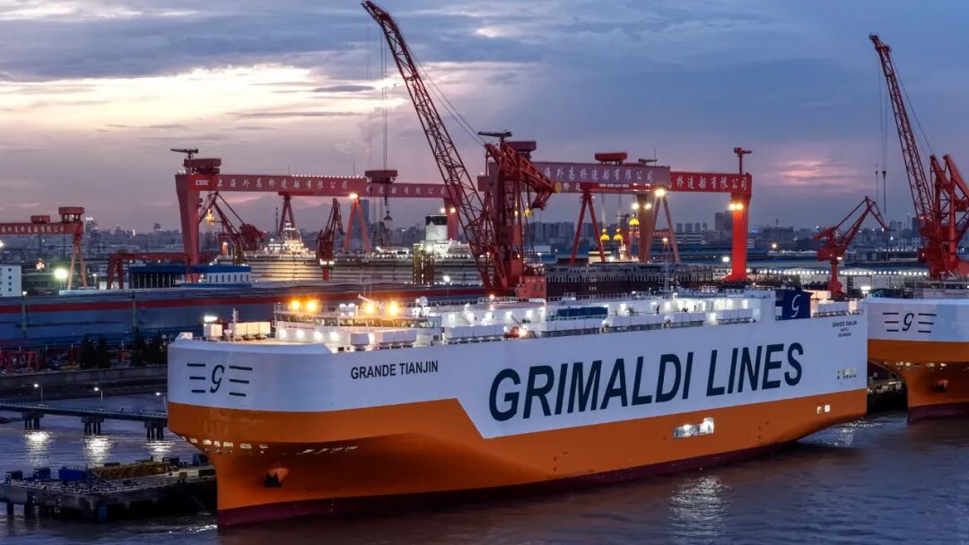 油船作为外高桥造船近年来承接的主营产品之一,目前已建立起稳定高效的批量建造节拍。以11,4万吨阿芙拉型成品油船为代表的系列船型,码头周期成功控制在78天左右,出坞到试航周期压缩至40-45天。2025年,该公司共交付阿芙拉型成品油船19艘,累计交付量预计占全球船队9,98%,其中包括全球首艘风帆助推阿芙拉型成品油船。 ▼ PCTC首船即创纪录 飘花影视高清。